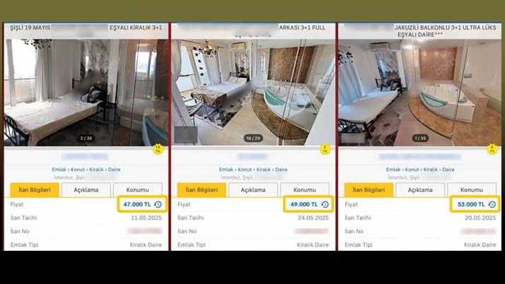 İstanbul Şişli’de aynı daire, üç farklı tarihte üç ayrı emlakçı tarafından farklı kira bedelleriyle ilana…